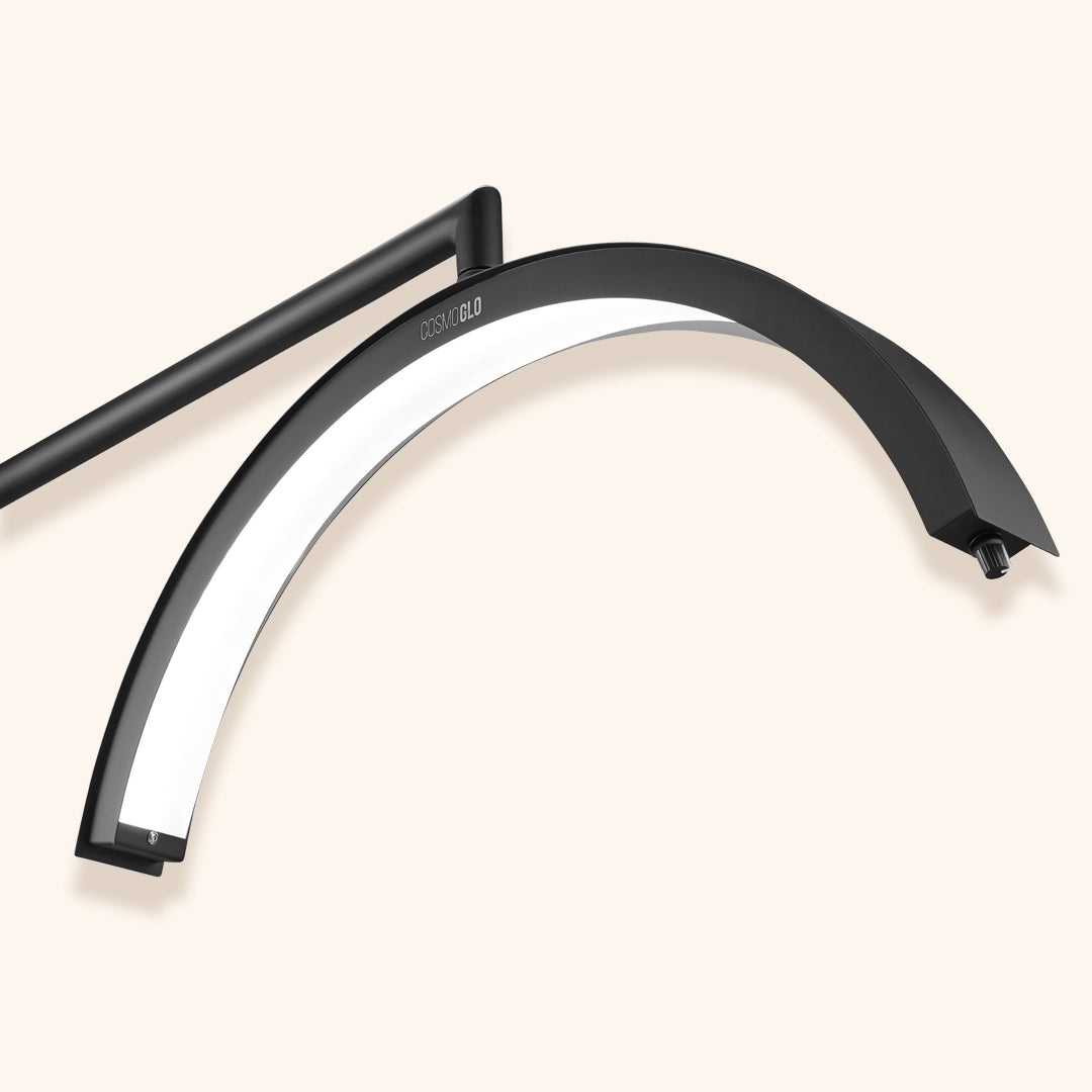 The CosmoGlo Original Light Bundle with Phone Clip is the ultimate lighting solution for beauty professionals. Designed specifically for those in the lash, aesthetics, and nail industries, the CosmoGlo light provides exceptional, even lighting with no shadows. Its sleek design, adjustable height, and 360° rotation ensure that every angle is perfectly illuminated, allowing for precision in every service.